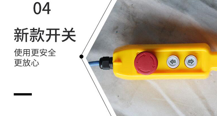 离合器吊窗机型号分为:300型、400型,钢丝绳长度为:90米与120米,可根据现场情况加长定制钢丝绳长度,东弘起重简易不要使用过长钢丝绳,这样会减少吊运物品重量,存在很大的危险。